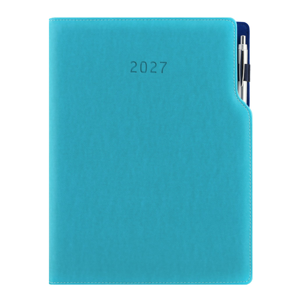 Diář GEP s propiskou týdenní A4 2027 - tyrkysová/modrý vnitřek