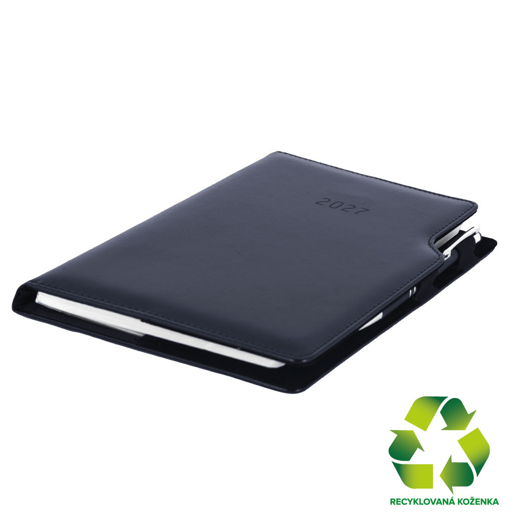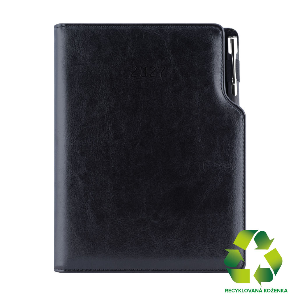 Diář GEP s propiskou týdenní A5 2027 český - černá/černý vnitřek - recyklovaná koženka