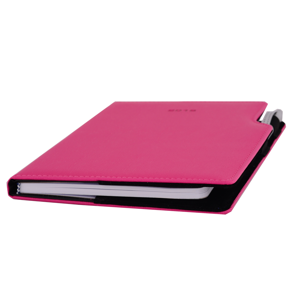 Součástí diáře je poutko na propisku a propiska.