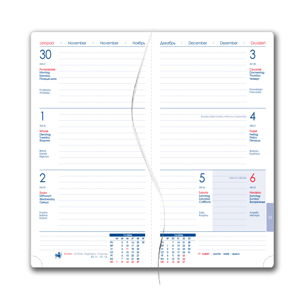 Diář obsahuje: kulaté odtrhávací rožky, bílou záložku a propisku