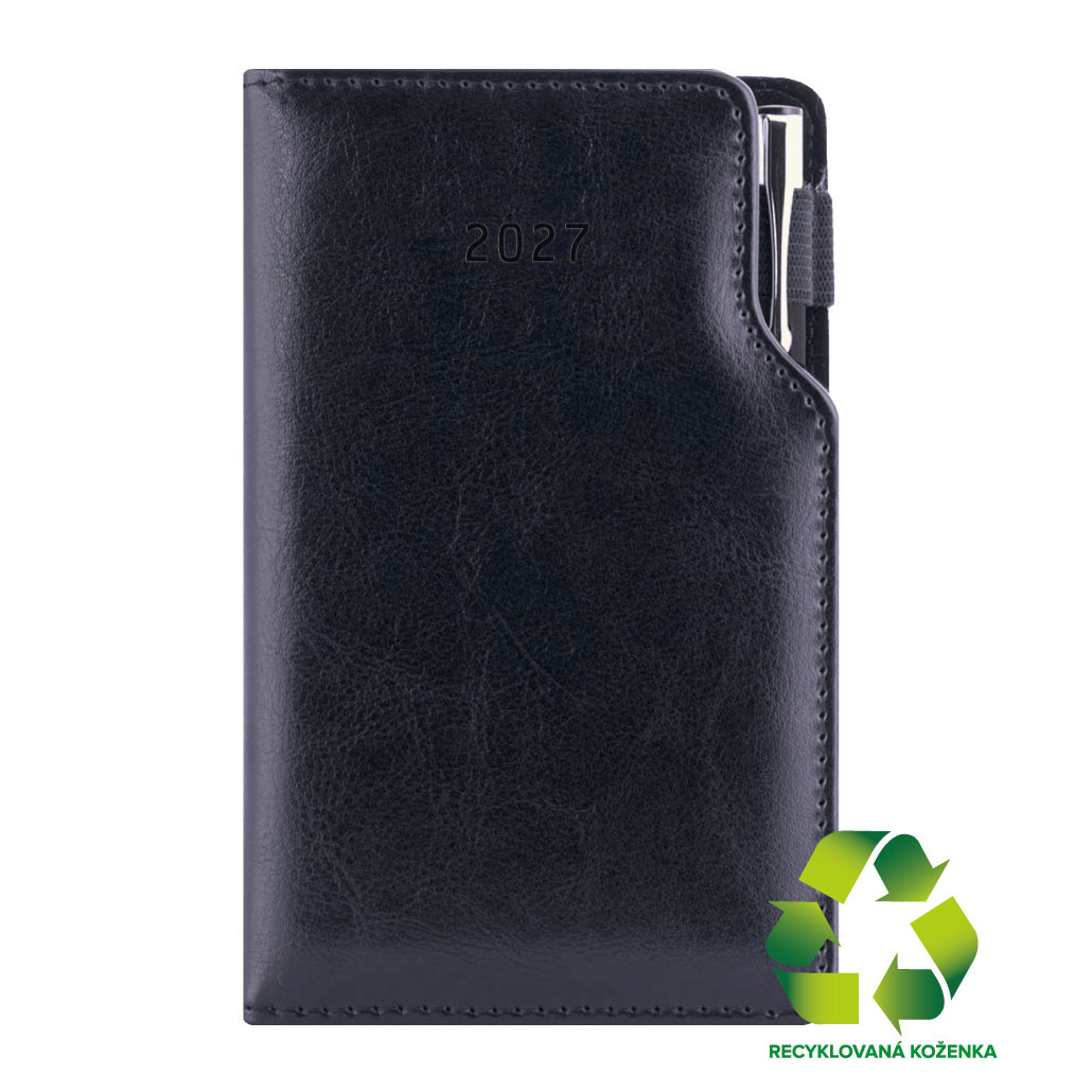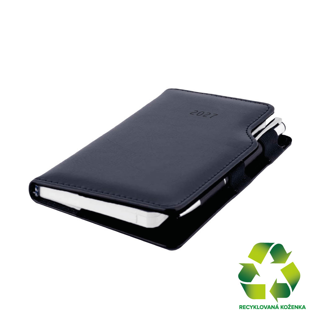 Diář GEP s propiskou týdenní kapesní 2027 český - černá/černý vnitřek - recyklovaná koženka