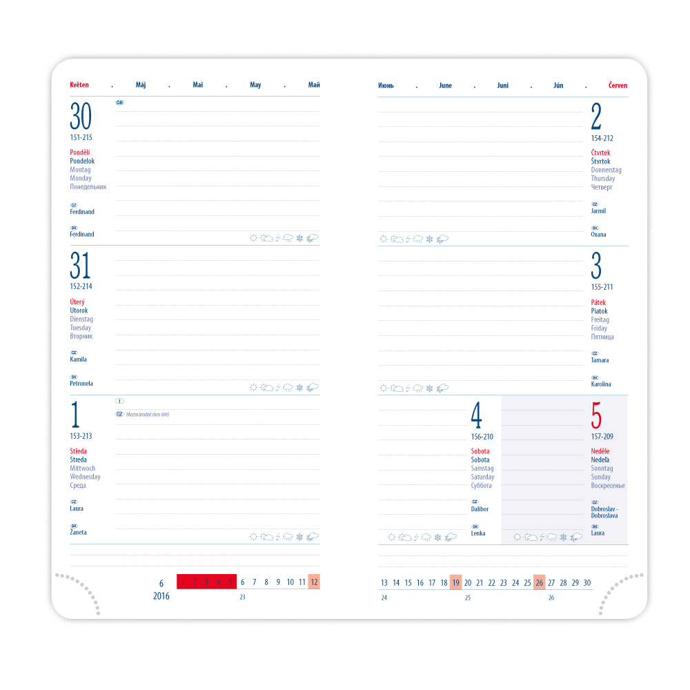 Diáře na rok 2016 také obsahují: vzdálenosti v km EU/CZ/SK, poznámky, měsíční poznámky