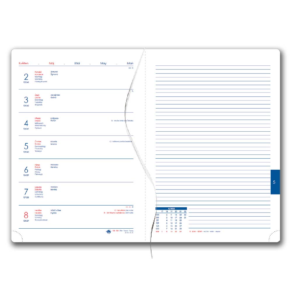 Diář obsahuje: kulaté odtrhávací rožky a bílou záložku