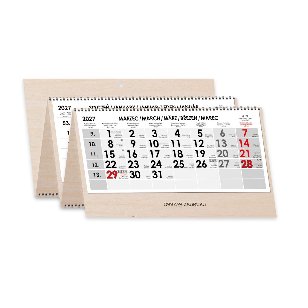 Dřevěný čtyřměsíční kalendář Kvatro Wood skládaný polský se spirálou 2027 - šedý