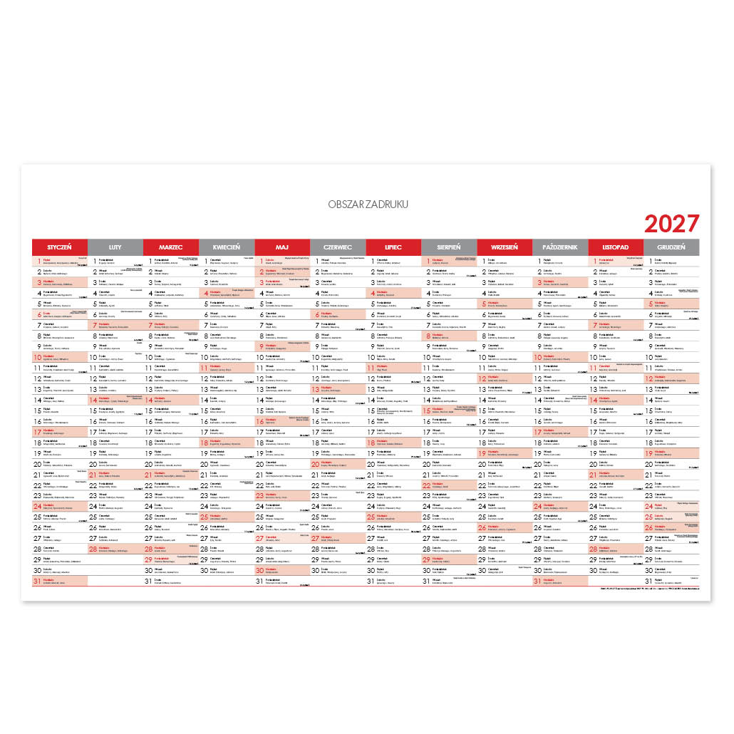 Nástěnný kalendář Plánovací mapa 2027 PL - 100 x 63 cm - červená