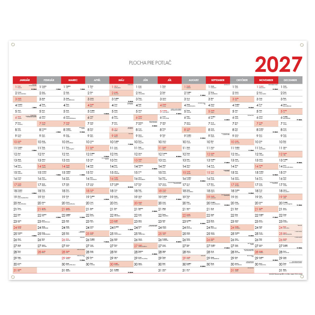Nástěnný kalendář Plánovací mapa 2027 SK s očky na zavěšení - 124 x 100 cm - červená