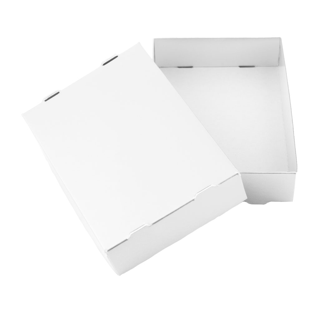 Papírová krabička s víkem skládací rozměr - 205x260x40 mm gramáž papíru - 600g/m2 barva - bílá poskytujeme množstevní slevy Na zakázku vyrobíme krabičky i jiných rozměrů a barev