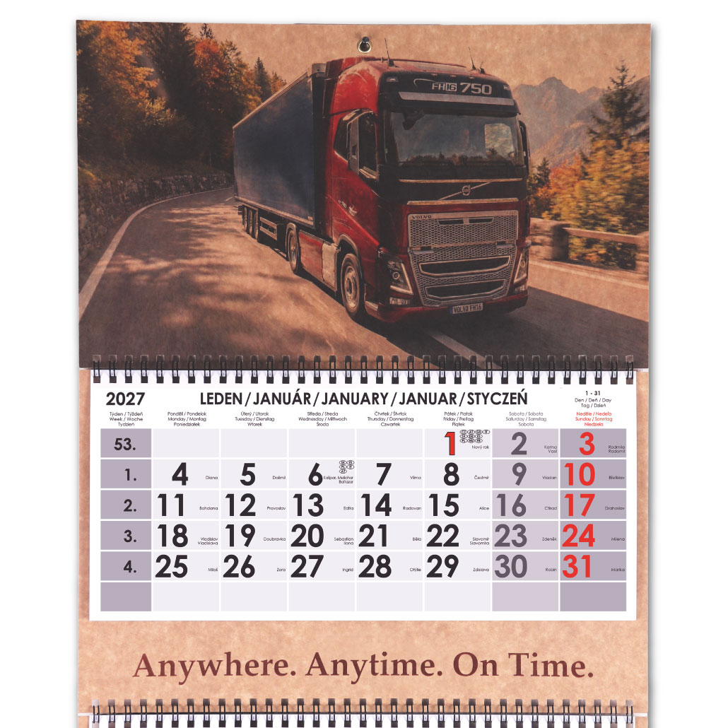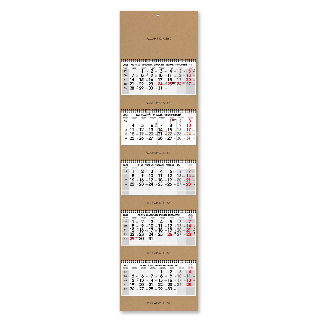 Pětiměsíční kalendář Kvinto Kraft skládaný český se spirálou 2027 - šedý
