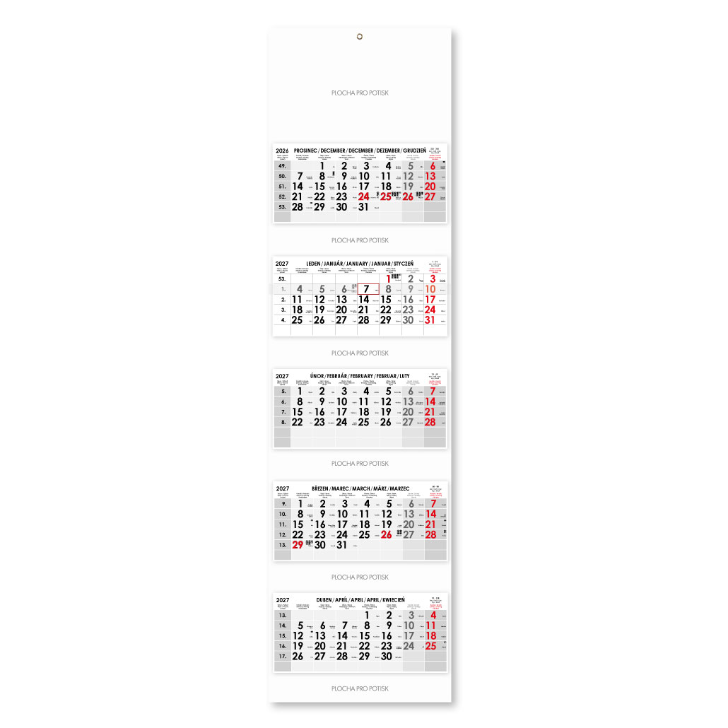 Formát kalendária: 295 x 135 mm