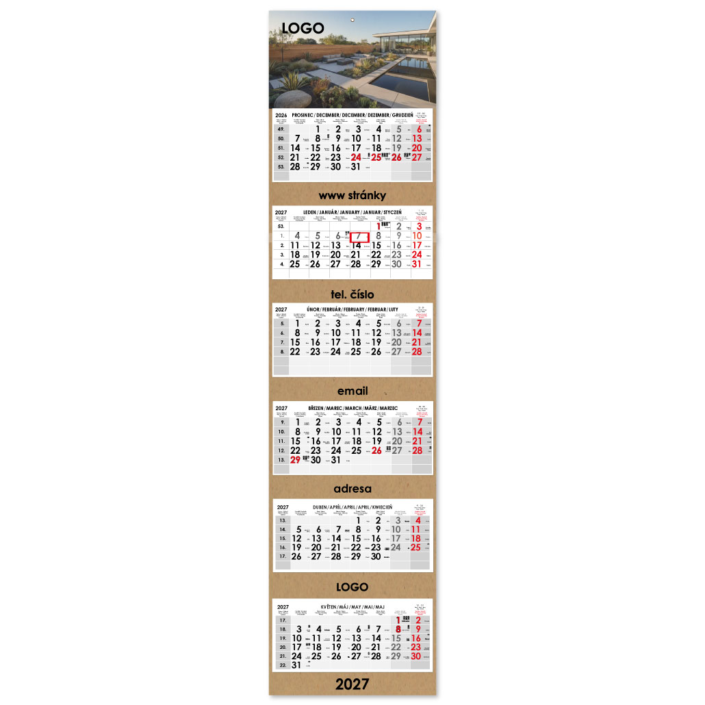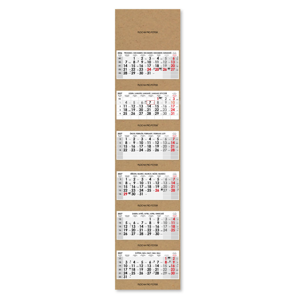 Formát kalendária: 295 x 135 mm