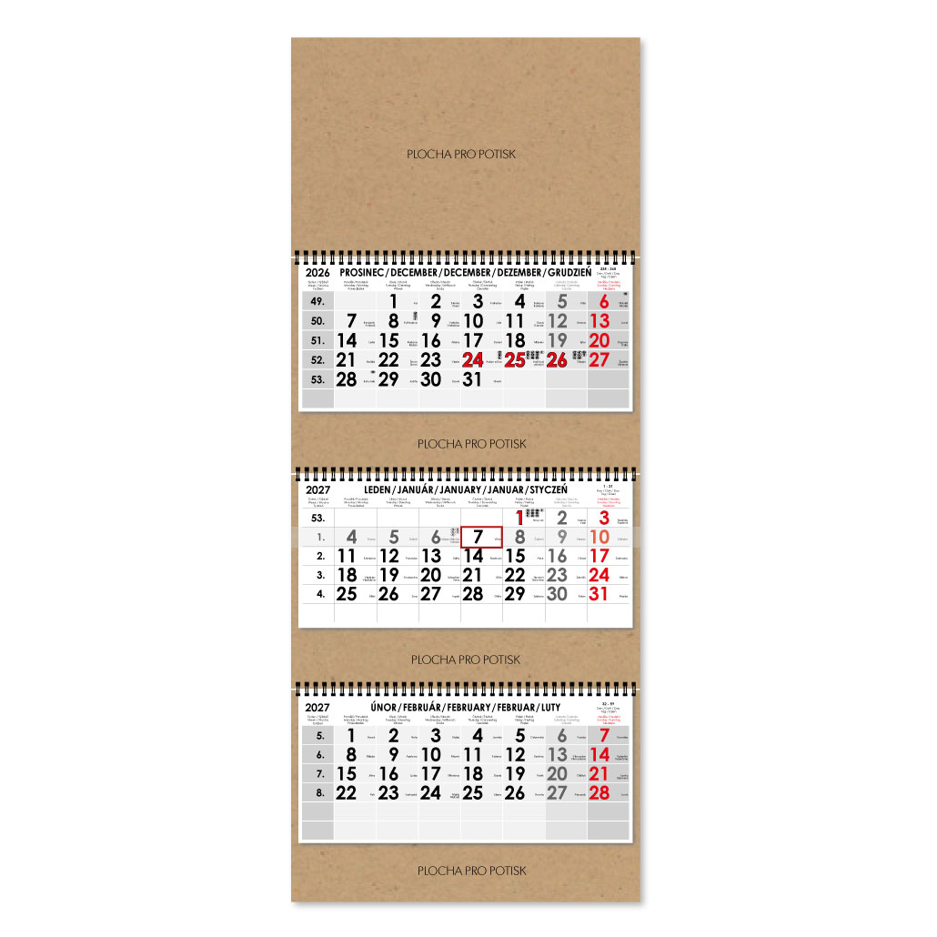 Tříměsíční kalendář Trio Kraft skládaný český se spirálou 2027 - šedý