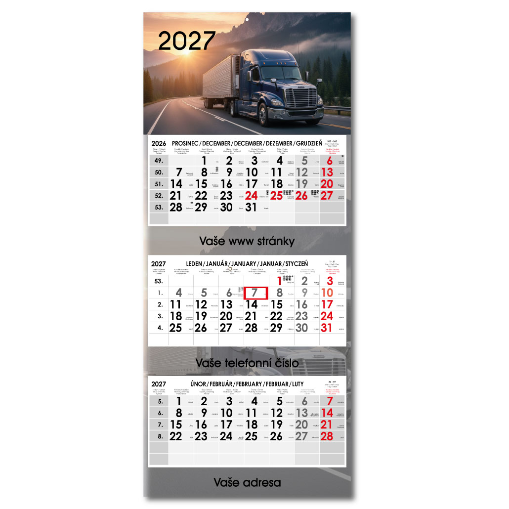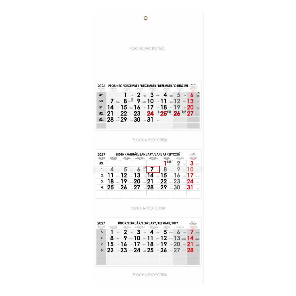 Tříměsíční kalendář Trio skládaný český 2027 - šedý