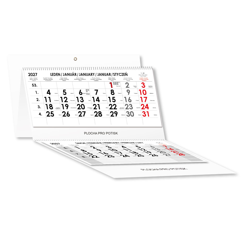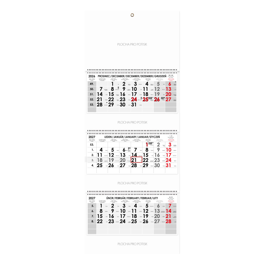 Tříměsíční kalendář Trio skládaný český se spirálou 2027 - šedý