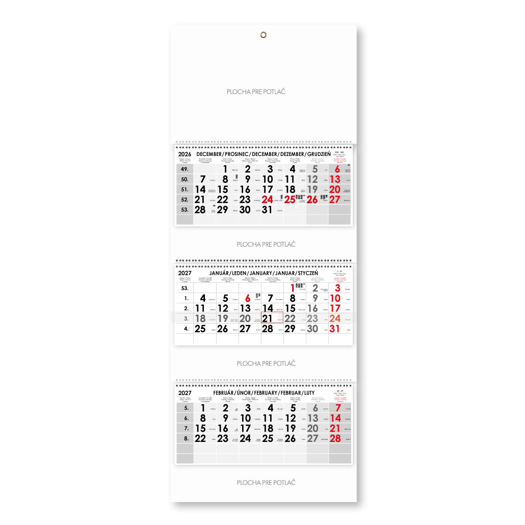 Formát kalendária: 295 x 135 mm