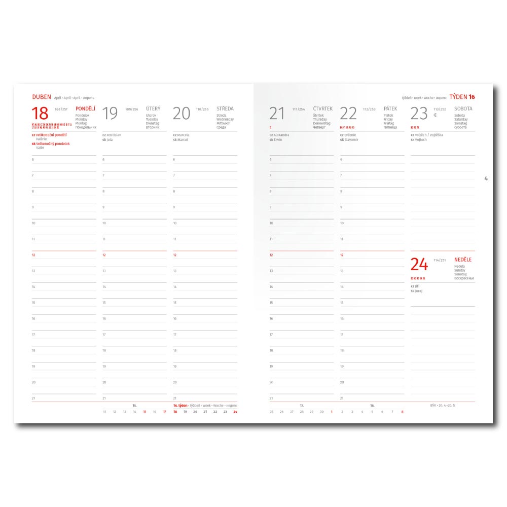 poznámky, daňový kalendář, důležitá telefonní čísla.