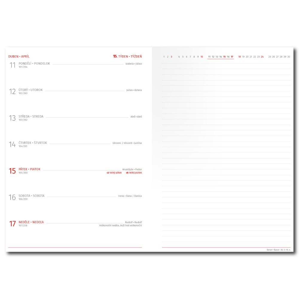 Kalendárium: české týdenní + jedna volná strana na poznámky