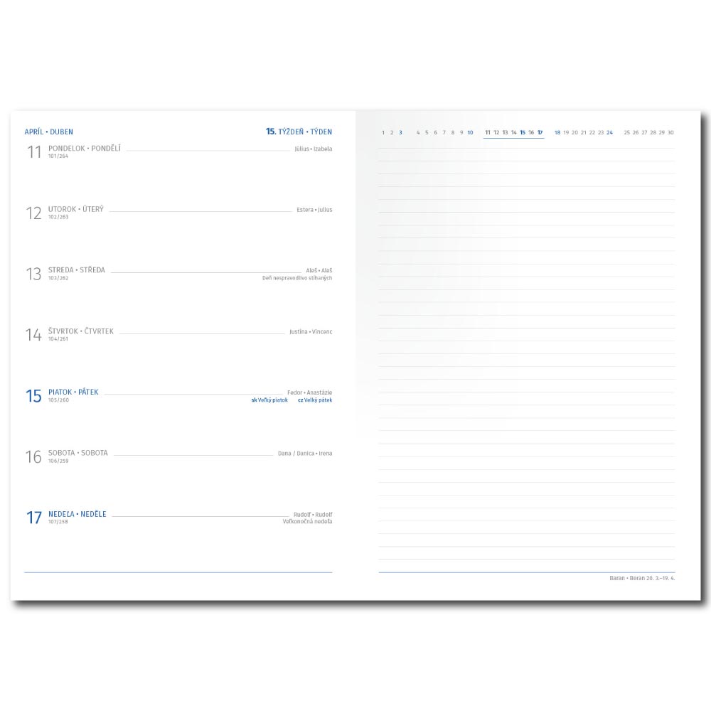 Kalendárium: slovenské týdenní + jedna volná strana na poznámky