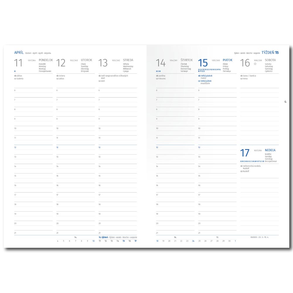 poznámky, daňový kalendář, důležitá telefonní čísla.