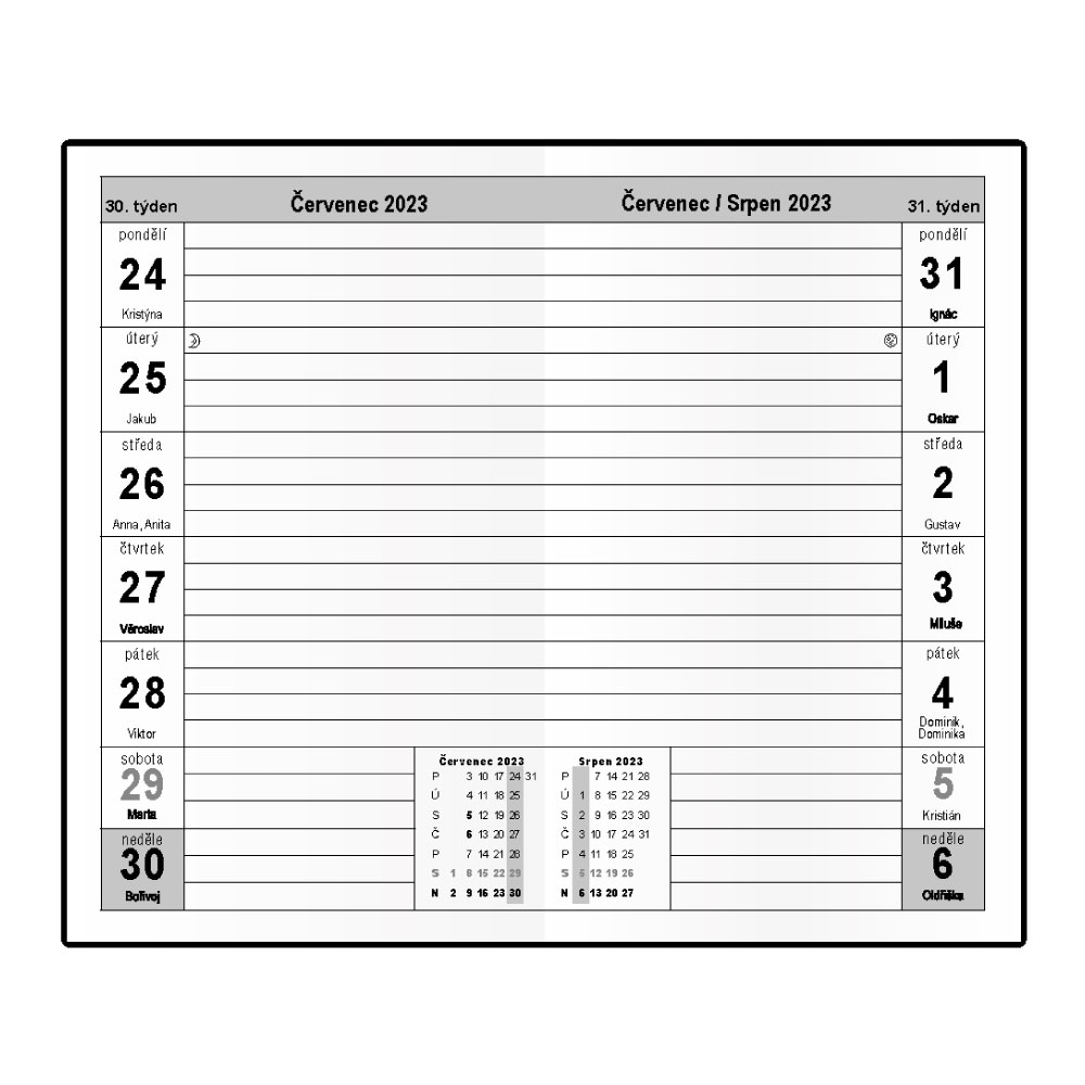 tabulkový kalendář 2024, adresář, místo na poznámky