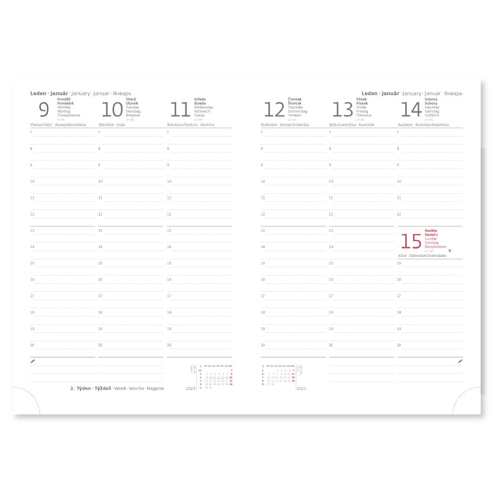 mezinárodní svátky, roční výhled, týdenní layout, adresář,