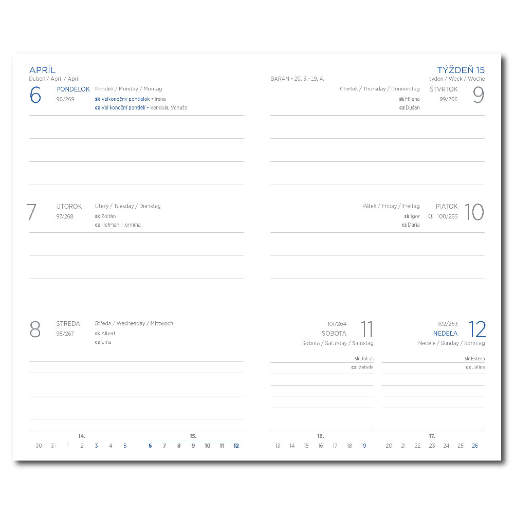 Týdenní kapesní diář 2026 slovenský Viva - modrá